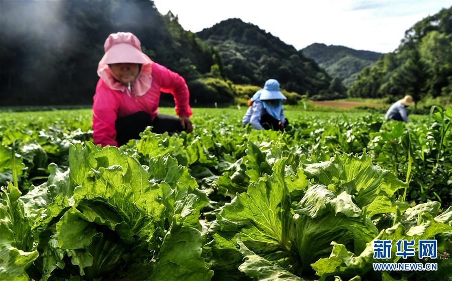 陜西寶雞市太白縣咀頭鎮(zhèn)塘口村的村民在菜地里勞作(7月4日攝)。近年來,地處秦嶺腹地的陜西太白縣利用海拔高、晝夜溫差大等條件發(fā)展高山反季節(jié)無公害蔬菜種植。目前全縣85%的群眾從事蔬菜生產,種植的反季節(jié)高山蔬菜涵蓋28大類390余種,暢銷全國。新華社記者劉瀟攝。