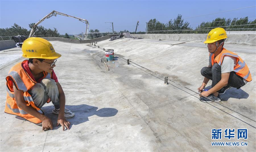 8月10日,工人在京雄城際鐵路霸州北站建設工地進行屋面坡層校核。京雄城際鐵路霸州北站站臺雨棚混凝土結構施工日前全部完成,目前霸州北站已全面轉入裝飾裝修和機電安裝階段,預計2020年底投入使用。京雄城際鐵路是連接北京市區(qū)、大興機場和雄安新區(qū)的重要干線。建成后,將進一步完善京津冀區(qū)域高速鐵路網結構,便利沿線群眾出行,對于推動京津冀協同發(fā)展和支撐建設雄安新區(qū)具有重要意義。新華社記者李曉果攝。