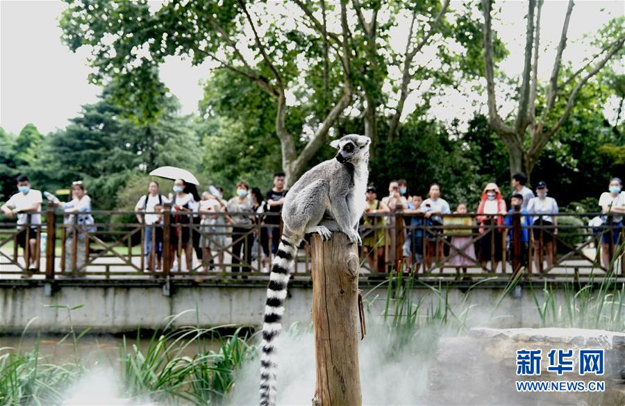 8月11日,上海動物園的環(huán)尾狐猴在“地噴”營造的水霧中玩耍。當(dāng)日,上海最高溫度達(dá)到35攝氏度,上海動物園開啟園內(nèi)安裝的各種噴淋裝置,讓動物們防暑降溫,樂享清涼。新華社記者張建松攝