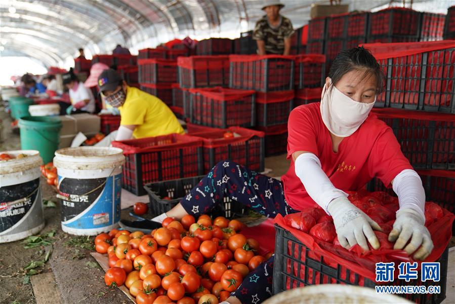 8月11日,在寧安市慶雨蔬菜專業(yè)合作社蔬菜產(chǎn)業(yè)園基地,工人把剛采摘下來的西紅柿打包裝箱。近年來,黑龍江省寧安市把設(shè)施蔬菜作為精準(zhǔn)扶貧的主導(dǎo)產(chǎn)業(yè)來抓,組織吸納貧困戶貸資加入產(chǎn)業(yè)合作社,帶動(dòng)貧困戶脫貧增收。寧安市將全市500余戶貧困戶的小額信貸資金集中投放到寧安市慶雨蔬菜專業(yè)合作社,建設(shè)蔬菜產(chǎn)業(yè)園基地,在帶動(dòng)貧困戶脫貧增收的同時(shí),壯大合作社蔬菜產(chǎn)業(yè)。新華社記者王建威攝。