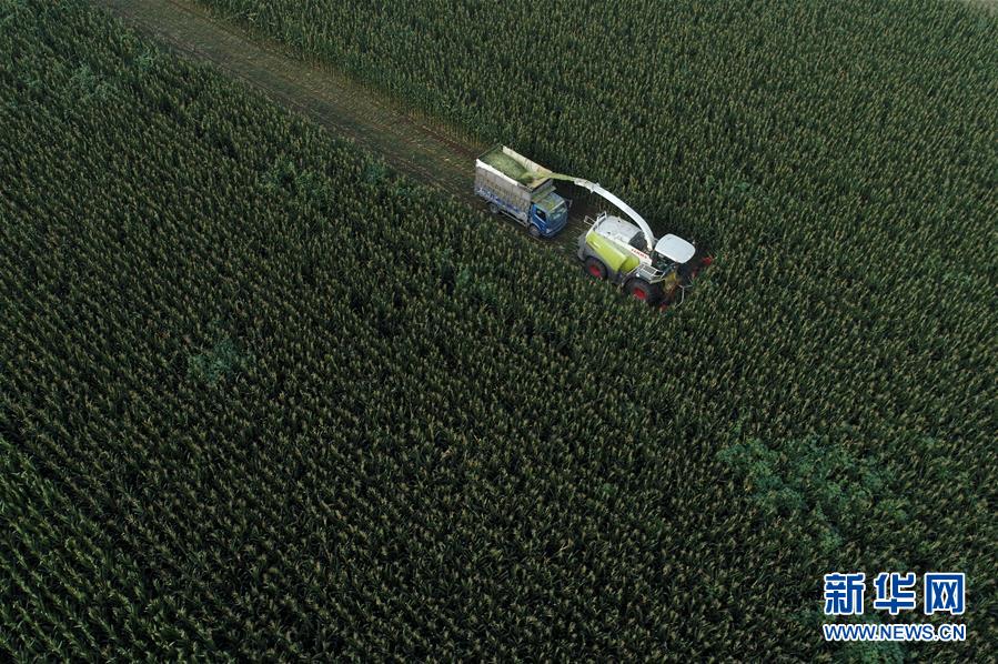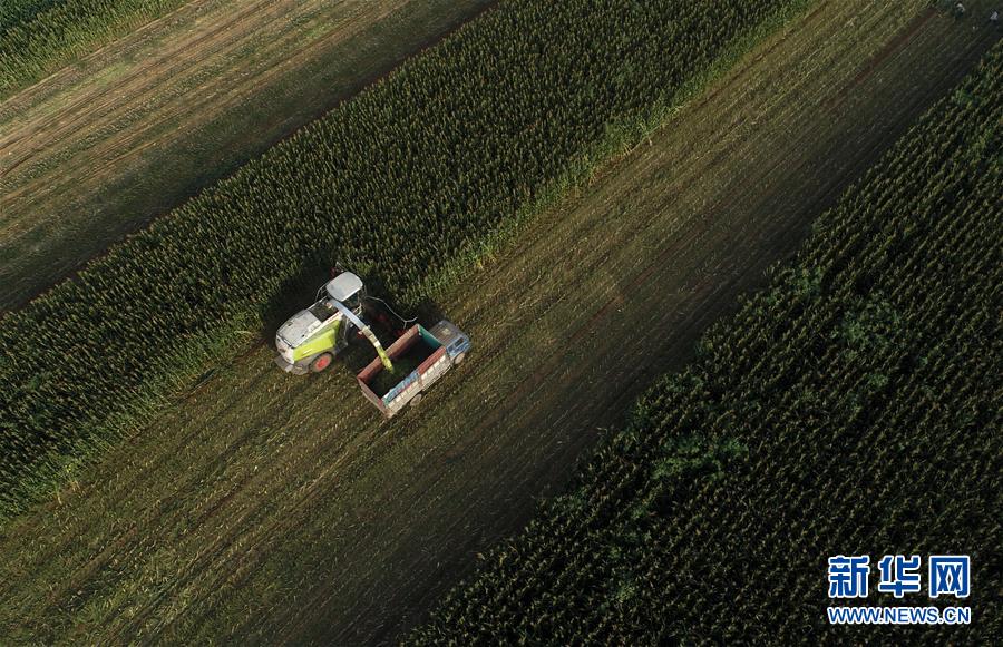 8月11日,灤南縣馬城鎮(zhèn)湛店子村的農(nóng)民使用大型機(jī)械收獲青貯玉米(無(wú)人機(jī)照片)。近日,河北省灤南縣的12萬(wàn)畝青貯玉米陸續(xù)開(kāi)始收獲,為當(dāng)?shù)啬膛pB(yǎng)殖提供新鮮優(yōu)質(zhì)飼料。作為河北省奶牛養(yǎng)殖大縣,灤南縣近年來(lái)大力推廣奶牛青貯玉米喂養(yǎng)模式,引導(dǎo)農(nóng)民種植青貯玉米,促進(jìn)農(nóng)民增收。新華社記者楊世堯攝