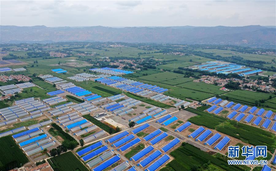 這是8月11日拍攝的甘肅省臨夏回族自治州臨夏縣易地扶貧搬遷后續(xù)產(chǎn)業(yè)發(fā)展日光溫室建設項目(無人機照片)。近年來,甘肅省臨夏回族自治州臨夏縣把易地扶貧搬遷作為打贏脫貧攻堅戰(zhàn)的重要任務,科學推進易地扶貧搬遷和脫貧攻堅工作。為了讓搬遷群眾能夠安居樂業(yè),當?shù)卣⒅胤龀趾罄m(xù)產(chǎn)業(yè)發(fā)展,引導搬遷群眾發(fā)展日光溫室、布鞋加工、觀光農業(yè)、特色種養(yǎng)殖等產(chǎn)業(yè),幫助搬遷群眾實現(xiàn)就近就業(yè)、拓寬增收渠道,確保搬遷群眾“搬得出、穩(wěn)得住、有事做、能致富”。新華社記者邢廣利攝