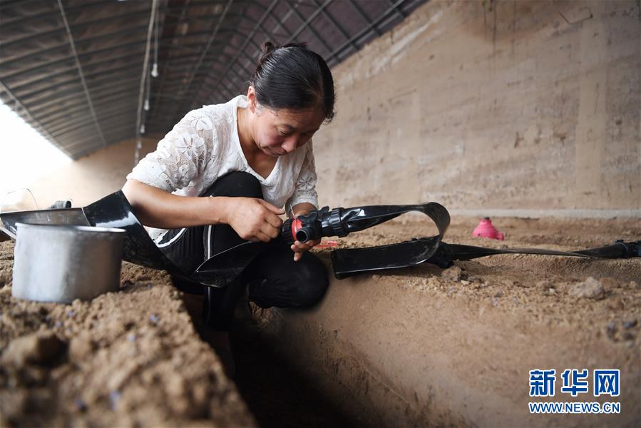 8月11日,在甘肅省臨夏回族自治州臨夏縣先鋒鄉(xiāng)前韓村,搬遷戶朱懷蘭在日光溫室內(nèi)勞作。近年來,甘肅省臨夏回族自治州臨夏縣把易地扶貧搬遷作為打贏脫貧攻堅(jiān)戰(zhàn)的重要任務(wù),科學(xué)推進(jìn)易地扶貧搬遷和脫貧攻堅(jiān)工作。為了讓搬遷群眾能夠安居樂業(yè),當(dāng)?shù)卣⒅胤龀趾罄m(xù)產(chǎn)業(yè)發(fā)展,引導(dǎo)搬遷群眾發(fā)展日光溫室、布鞋加工、觀光農(nóng)業(yè)、特色種養(yǎng)殖等產(chǎn)業(yè),幫助搬遷群眾實(shí)現(xiàn)就近就業(yè)、拓寬增收渠道,確保搬遷群眾“搬得出、穩(wěn)得住、有事做、能致富”。新華社記者陳斌攝