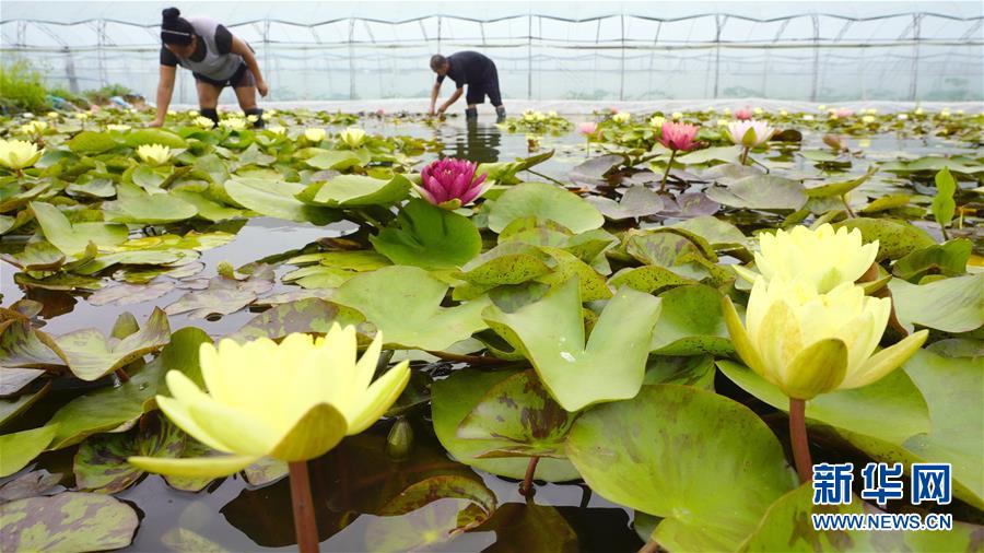 8月12日,河北省灤州市茨榆坨鎮(zhèn)草塘坨村花農(nóng)在大棚內(nèi)打理種植的蓮花。近年來,河北省灤州市茨榆坨鎮(zhèn)結(jié)合市場需求,引導農(nóng)民發(fā)展玫瑰、蓮花等花卉規(guī)模化種植,通過“線上”和“線下”相結(jié)合的銷售模式,進入北京、天津等地花卉市場,在扮靚城鄉(xiāng)的同時為種植戶帶來良好收益。新華社記者 牟宇 攝