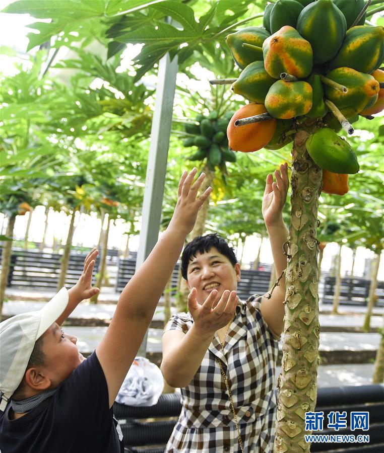 在吉林省永吉縣萬昌鎮(zhèn)宇豐紅果木瓜產(chǎn)業(yè)園,游客在大棚內(nèi)體驗(yàn)?zāi)竟喜烧?月12日攝)。近年來,吉林省永吉縣萬昌鎮(zhèn)積極優(yōu)化農(nóng)業(yè)產(chǎn)業(yè)結(jié)構(gòu),推進(jìn)農(nóng)業(yè)生態(tài)觀光采摘園建設(shè),引進(jìn)木瓜、香蕉等熱帶果品發(fā)展“南果北種”,助當(dāng)?shù)剞r(nóng)民開啟一條致富新路。新華社記者 許暢 攝