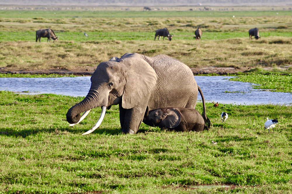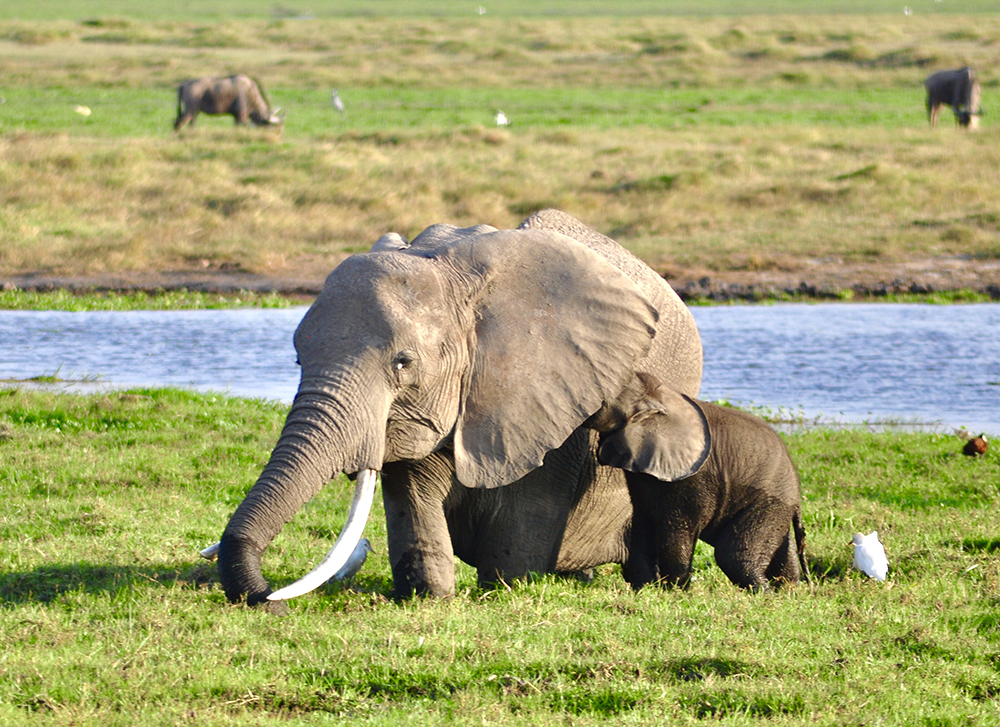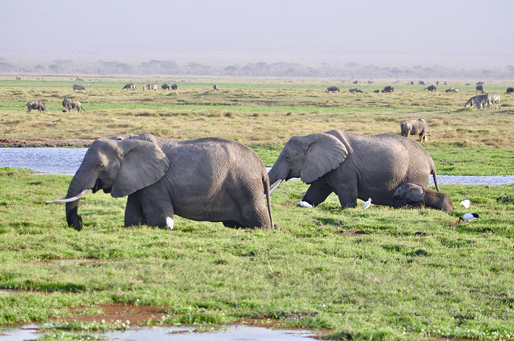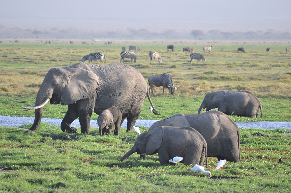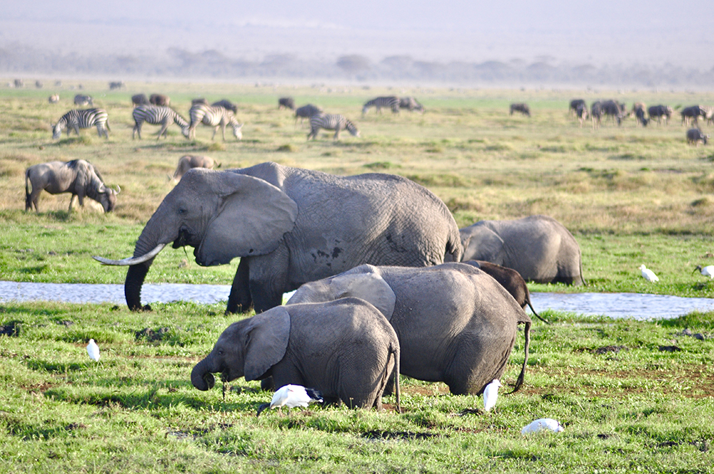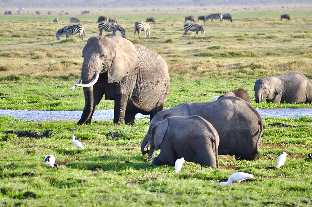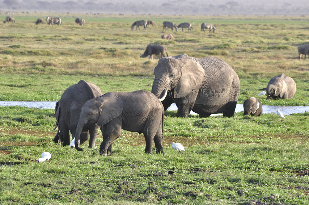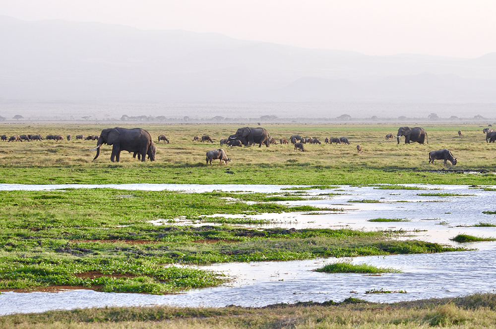肯尼亞東南部,與坦桑尼亞接壤的安博賽利國家公園,距內羅畢240公里,因水草豐美而成為野生非洲大象的樂園。