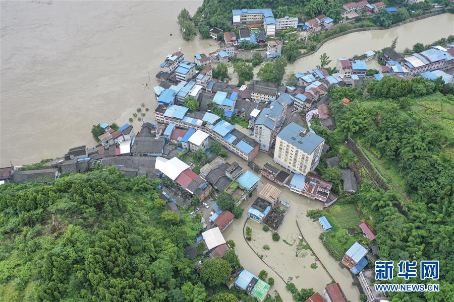 8月13日,在重慶市潼南區(qū)米心鎮(zhèn),涪江水位明顯上漲,洪水倒灌進場鎮(zhèn)(無人機照片)。受上游強降雨影響,嘉陵江近日出現明顯漲水過程,“嘉陵江2020年第1號洪水”已在嘉陵江支流涪江形成。重慶市正式啟動洪水防御Ⅱ級應急響應。據初步統(tǒng)計,截至13日16時30分,位于涪江畔的重慶市潼南區(qū),沿涪江7個鎮(zhèn)街不同程度受災,受災人數8209人,轉移人口6658人,農作物受災面積5579畝。新華社記者黃偉攝
