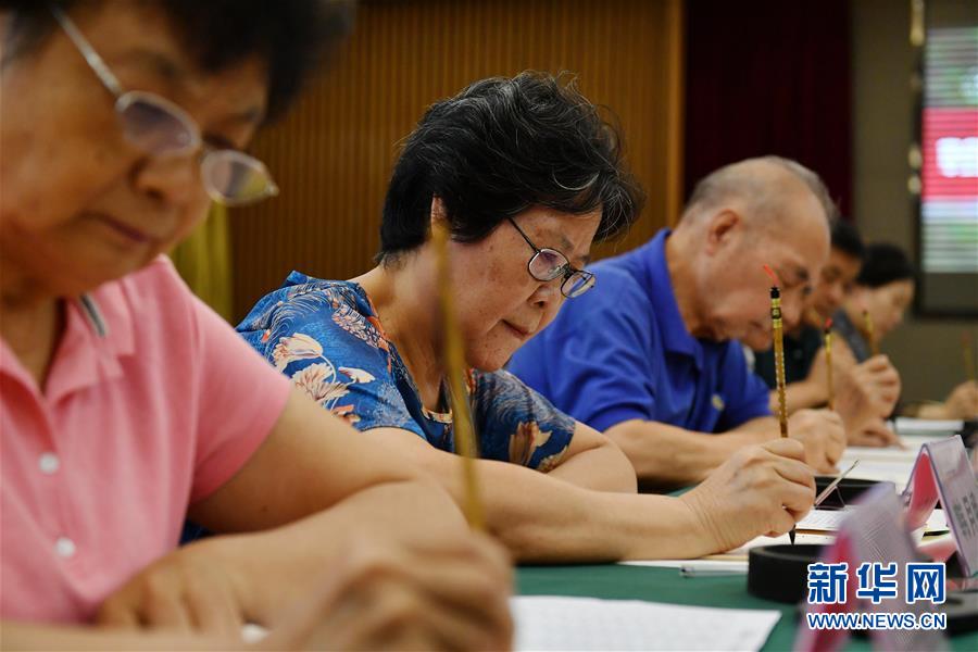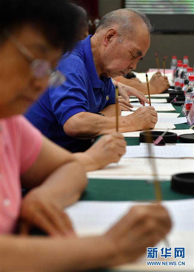 8月13日,陜西師范大學(xué)退休教師韓月娥(左二)等書寫錄取通知書。當日,陜西師范大學(xué)2020年手寫錄取通知書正式開筆。該校自2007年起采用毛筆書寫錄取通知書的方式,為新生傳遞佳音。今年,學(xué)校十余位退休教師、在職教師、校友代表等書法愛好者將為約4500名新錄取的本科生送上帶著墨香的大學(xué)錄取通知書。新華社記者張博文攝