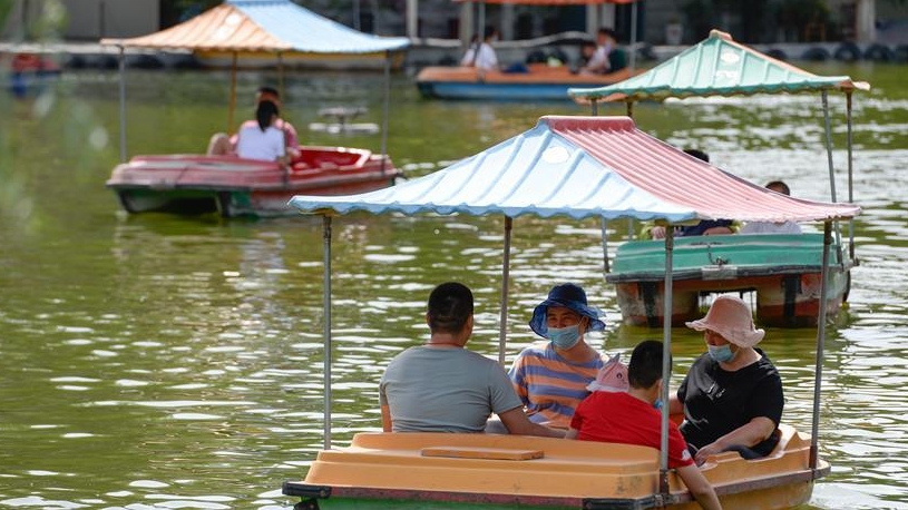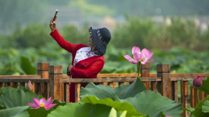近日,河北省唐山市南湖公園內(nèi)荷花競相綻放,呈現(xiàn)出“接天蓮葉無窮碧,映日荷花別樣紅”的美麗景象,吸引了眾多游客前來觀賞。