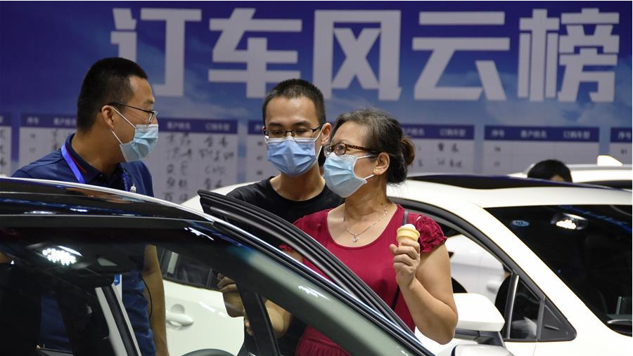6月27日,市民在第35屆中國·福州國際汽車展覽會上看車選車。
