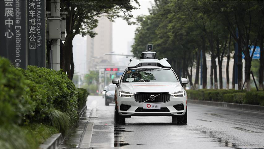 這是6月27日在上海汽車會展中心拍攝的滴滴自動駕駛體驗區(qū)。
