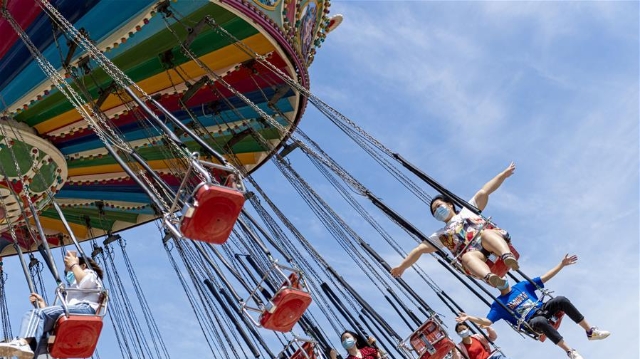 5月17日,在江西省博物館新館,參觀者入館前測(cè)量體溫。