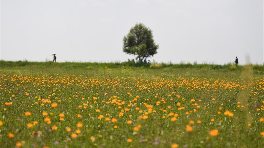 這是7月22日拍攝的金蓮川草原。金蓮川草原位于內(nèi)蒙古自治區(qū)錫林郭勒盟正藍(lán)旗,正值盛夏,金蓮川草原上鮮花綻放,景色宜人。