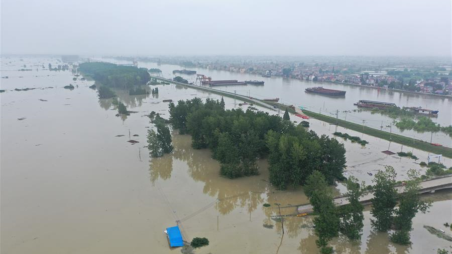 這是7月21日拍攝的被淹的南京市高淳區(qū)陽(yáng)江鎮(zhèn)勝利圩。