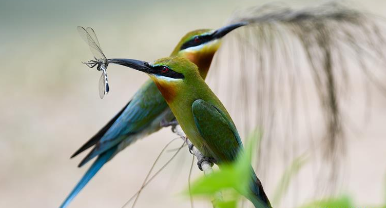 近日,不少栗喉蜂虎來到海南省??谑兄卜敝?,據(jù)海口畓榃濕地研究所工作人員統(tǒng)計(jì),目前來到??诘睦鹾矸浠⒁延薪?00只。