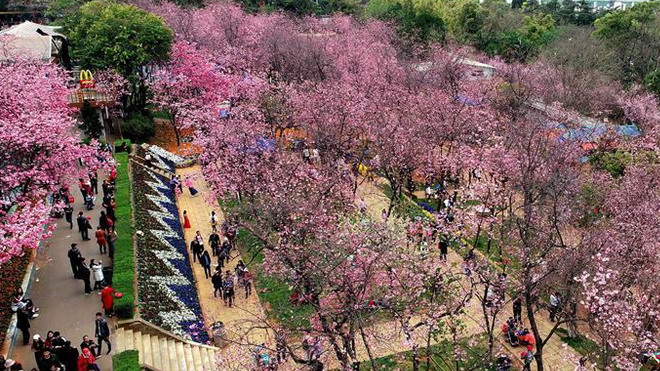 隨著氣溫逐漸回升,北京玉淵潭公園上千株早櫻相繼綻放,進入最佳觀賞期。