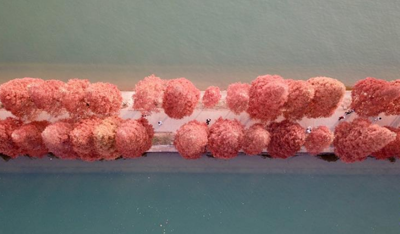 初冬時節(jié),位于湖南省長沙市開福區(qū)的湖南烈士公園年嘉湖畔暖陽照耀,色彩繽紛的樹葉與年嘉湖碧水構成一幅美麗的冬日畫卷。