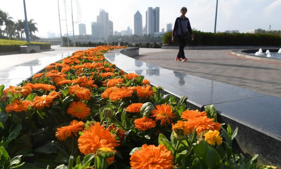 冬日,廣西南寧綠樹成蔭,鮮花綻放,景色宜人。