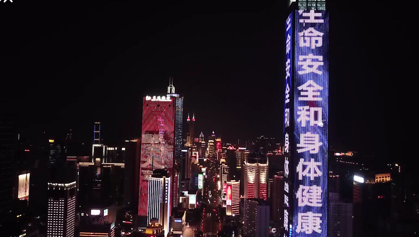 新型冠狀病毒肺炎疫情爆發(fā)以來,福田區(qū)眾志成城,防控疫情。平安金融大廈、漢國(guó)大廈等眾多樓體及大屏幕紛紛亮起。