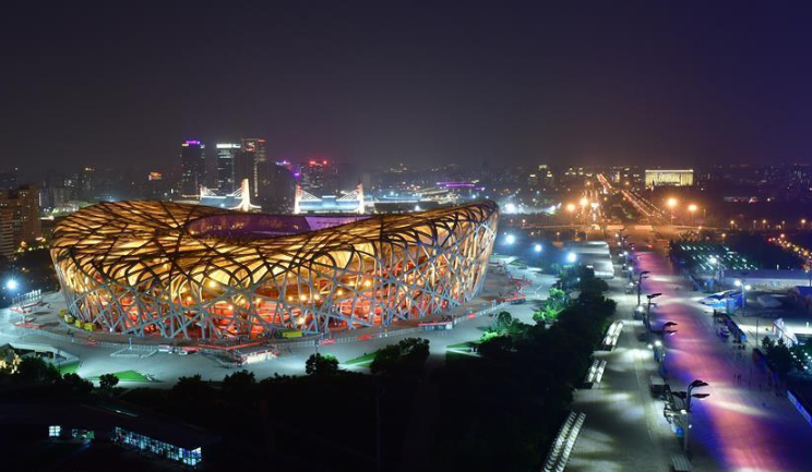 5月14日,國家會(huì)議中心和奧林匹克塔交相輝映。 當(dāng)晚,一場“空間光影秀”在北京上演。
