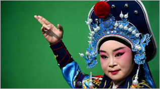3月3日,李金玲在鄭州文化館通過(guò)直播的形式進(jìn)行帶妝表演豫劇《花木蘭》選段。