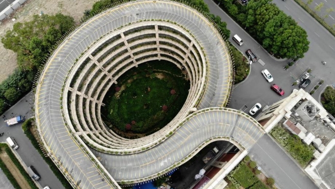 航拍杭州“3D魔幻”停車場 轉暈車主