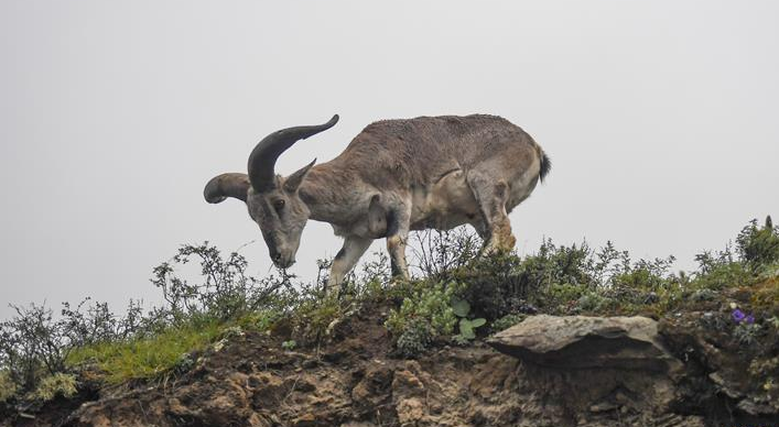 在西藏山南市洛扎縣色鄉(xiāng)海拔4000米左右的盤(pán)山路上,一群巖羊悠閑地吃著野果青草,完全不介意來(lái)往的車(chē)輛、行人和近在咫尺的鏡頭。