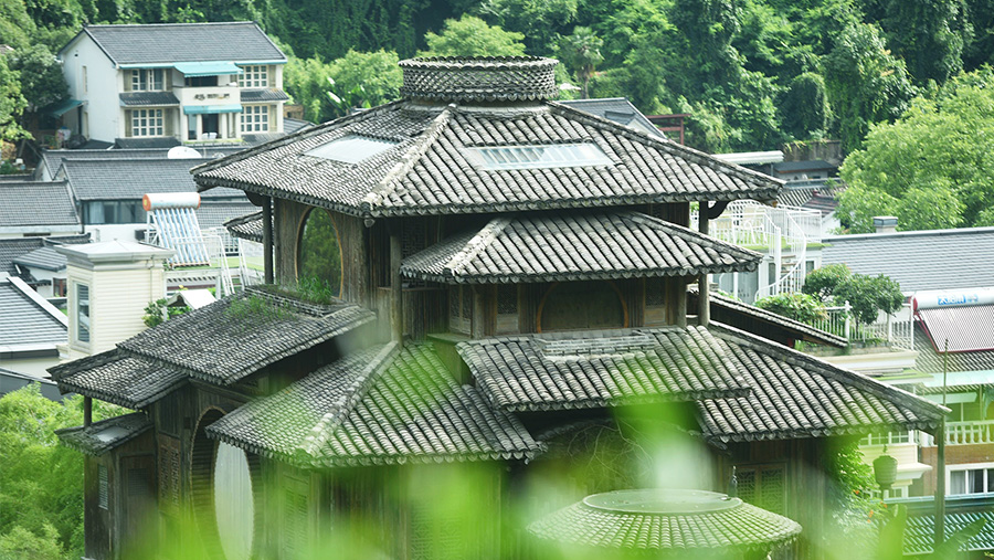 2020年6月18日,杭州西湖景區(qū)內(nèi),酷似宮崎駿的動畫電影《千與千尋》“湯屋”的木制小樓。