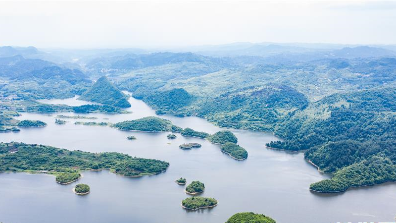 初夏時(shí)節(jié),貴州省貴陽市阿哈湖國家濕地公園草木蒼翠,風(fēng)景如畫,吸引人們前來休閑游玩。