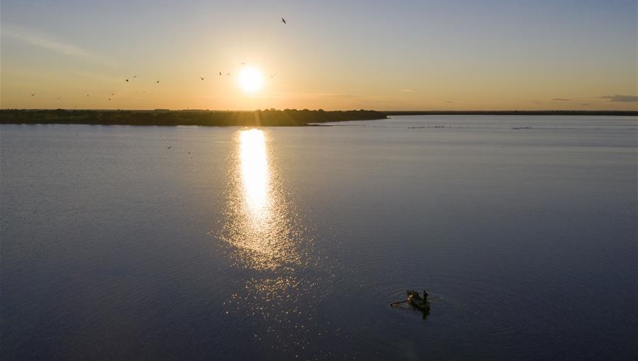 夕陽下的大力加湖
