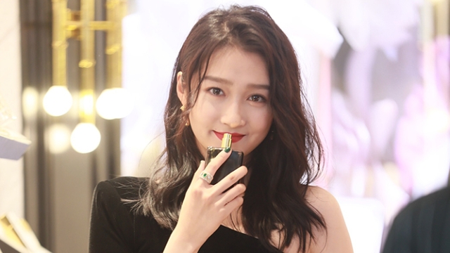 狀態(tài)滿分!關(guān)曉彤斜肩花朵裙秀香肩 對鏡甜笑十分搶鏡