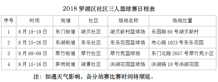 “2018羅湖區(qū)社區(qū)三人籃球賽”分成四個分站賽。目前,羅湖區(qū)東門街道湖貝社區(qū)的“東門站”首場分站賽已決出勝負,接下來的三個分站賽地點分別是羅湖區(qū)東湖街道東樂社區(qū)、羅湖區(qū)翠竹街道翠竹社區(qū)和羅湖區(qū)筍崗街道湖景社區(qū)。