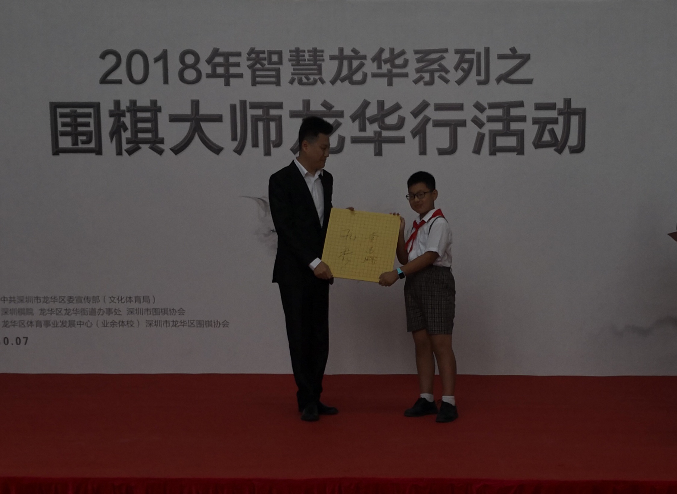 孔杰向小棋手贈(zèng)送簽名棋盤