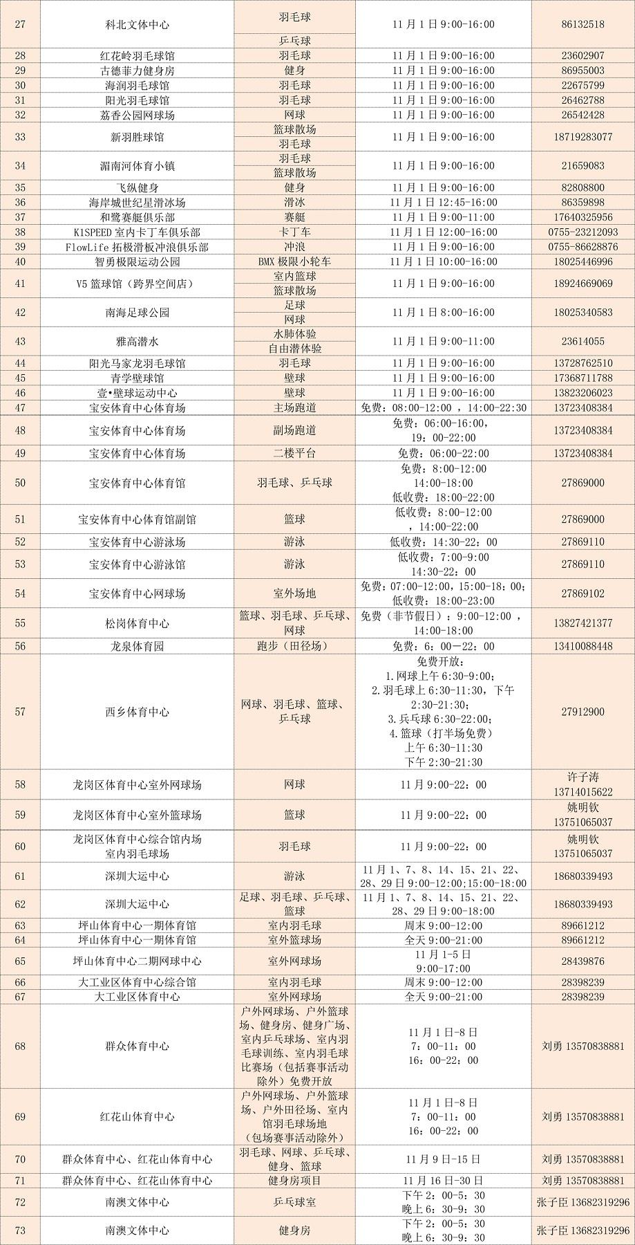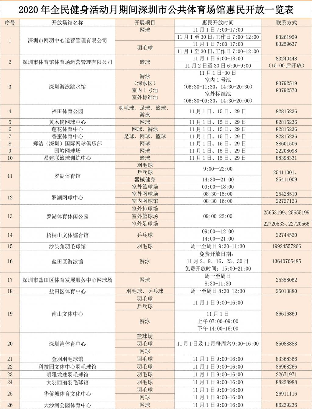 2020年深圳全民健身活動月深圳惠民場館開放表