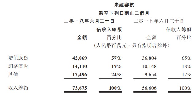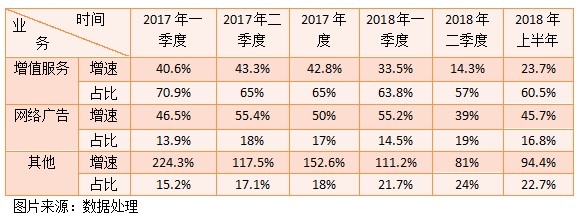 下面我們看該公司業(yè)務收入的變化,先看大類分錄,有增值業(yè)務、網(wǎng)絡廣告和其他業(yè)務。