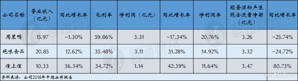 智通財(cái)經(jīng)APP注意到,絕味食品(603517.SH)和煌上煌(002695.SZ)在今年中期均取得了不錯(cuò)的業(yè)績(jī)表現(xiàn)。其中,絕味食品在上半年實(shí)現(xiàn)收入20.85億元,同比增長(zhǎng)12.62%,凈利潤(rùn)3.11億元,同比增長(zhǎng)31.28%;煌上煌在上半年實(shí)現(xiàn)營(yíng)收10.33億元,同比增長(zhǎng)42.39%。此外,上述兩家公司的經(jīng)營(yíng)活動(dòng)產(chǎn)生的現(xiàn)金流量?jī)纛~分別為3.32億元和3.47億元,均超過(guò)周黑鴨的水平。也就是說(shuō),周黑鴨雖然紙面上盈利能力出眾,但衡量盈利質(zhì)量的經(jīng)營(yíng)活動(dòng)現(xiàn)金流方面,已經(jīng)沒(méi)有太多的優(yōu)勢(shì)。