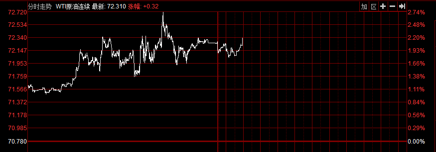 與此同時(shí),WTI原油期貨上漲1.96%,報(bào)72.17美元/桶。