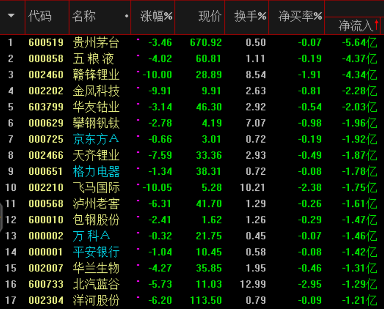 白酒、醫(yī)藥、鋰電資金流出較大。