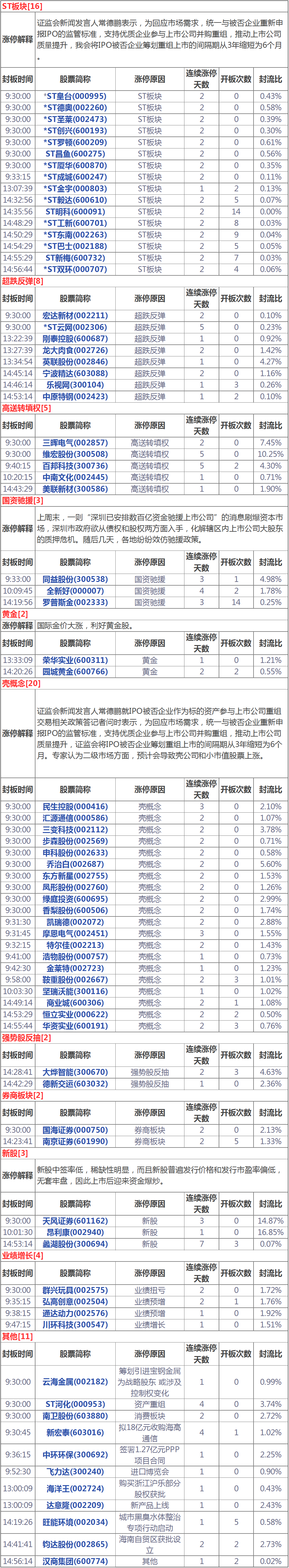 今天漲停家數(shù)較上一交易日有所減少,兩市76家漲停;跌停13家。成交量方面,滬市成交1669億元,深市成交1907億元,兩市總成交額約為3576元,較上一交易日縮量664億元。盤面上,ST板塊、黃金、證券等板塊領(lǐng)漲;白酒、分散染料、國產(chǎn)軟件、粵港澳大灣區(qū)等板塊領(lǐng)跌。
