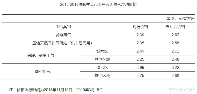 智通財經(jīng)APP獲悉,11月13日,北京發(fā)改委發(fā)布關(guān)于2018-2019供暖季本市非居民天然氣銷售價格浮動問題的通知。2018年11月15日至2019年3月15日,天然氣銷售價格上浮0.23元/立方米。