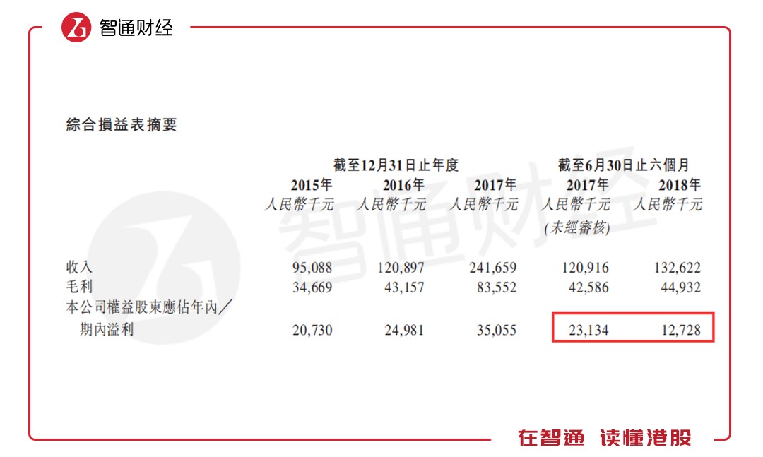 業(yè)績(jī)方面,招股書顯示,公司2015-2017年的收入分別約為9510萬元(人民幣,下同)、1.21億元及2.42億元,同期公司凈利潤(rùn)分別約為2070萬元、2500萬元及3506萬元。2018年上半年,公司收入為1.33億,同比增長(zhǎng)10%,凈利潤(rùn)為1273萬,同比下降45%。凈利率由于2017年上半年的14.5%,降低至9.6%。