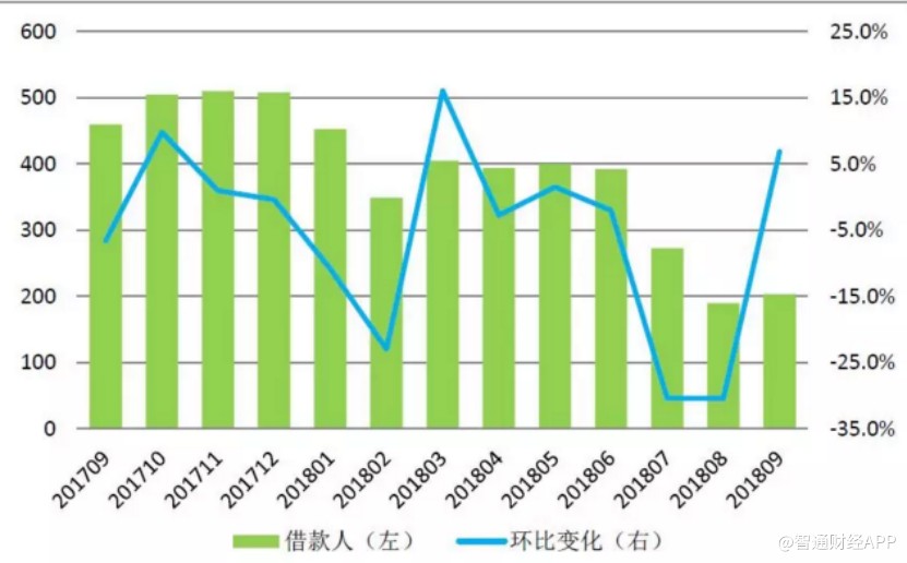 從統(tǒng)計數(shù)據可以看出,從今年6月開始,P2P網貸行業(yè)借款人人數(shù)出現(xiàn)大幅下滑,重疊上圖正是行業(yè)監(jiān)管加強開始的時間點。到了9月,借款人人數(shù)首次開始回升,說明市場已經感受到監(jiān)管后行業(yè)規(guī)范化的提高,這正說明市場對P2P行業(yè)信心正在出現(xiàn)回升。