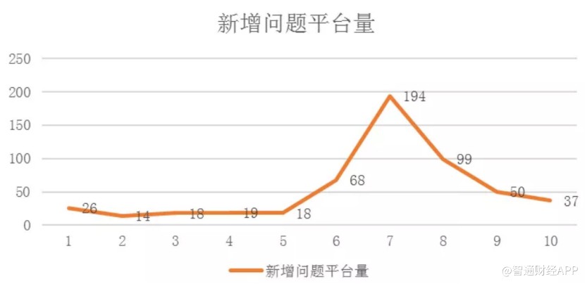 自從監(jiān)管加強行業(yè)規(guī)范和引導后,P2P問題平臺便不斷被爆出。智通財經APP了解到,今年6月以來,國內新增問題平臺逐漸增多,并在7月份達到最多的194家,但到10月份新增問題平臺的數(shù)量卻已經低至37家。也就是說,在新的監(jiān)管強度下,又有一批問題公司得以治理,行業(yè)整合進程已經被加速。