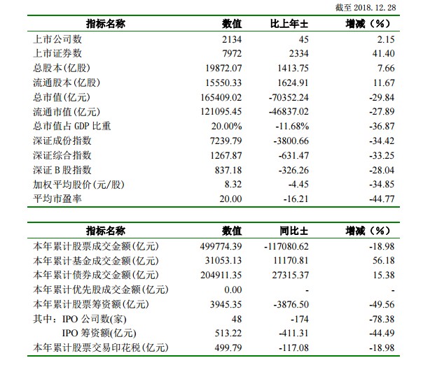 智通財經(jīng)APP獲悉,深交所于12月28日晚間發(fā)布2018年深圳證券市場概況數(shù)據(jù)顯示,截至當(dāng)日收市,上市公司總數(shù)2134家,增2.15%;總市值為165409.02億元,降低29.28%;加權(quán)平均股價為8.32元/股,跌34.85%。平均市盈率跌44.77%至20倍。