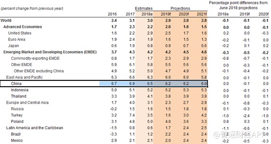 仍然從當前的形勢說起,據(jù)世界銀行統(tǒng)計,2018年中國GDP增速為6.5%,比2017年低0.4個百分點。這個增速高嗎?相對于十年前動輒雙位數(shù),低不過8%的增速來說,不高;但是拿到今天,橫向比較一下,這個增速仍然是高速甚至吊打大部分尤其是發(fā)達國家。