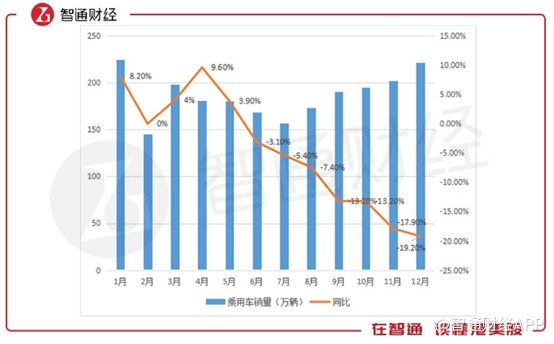 再具體一點,根據(jù)智通財經(jīng)APP的統(tǒng)計,2018年乘用車全年累計銷量2235萬輛,同比下降5.8%,其中在12月份,銷量同比下滑達19.2%,連續(xù)8個月增長持續(xù)下滑,且連續(xù)6個月出現(xiàn)負增長。這說明汽車的“消化”能力已經(jīng)到了一個瓶頸。