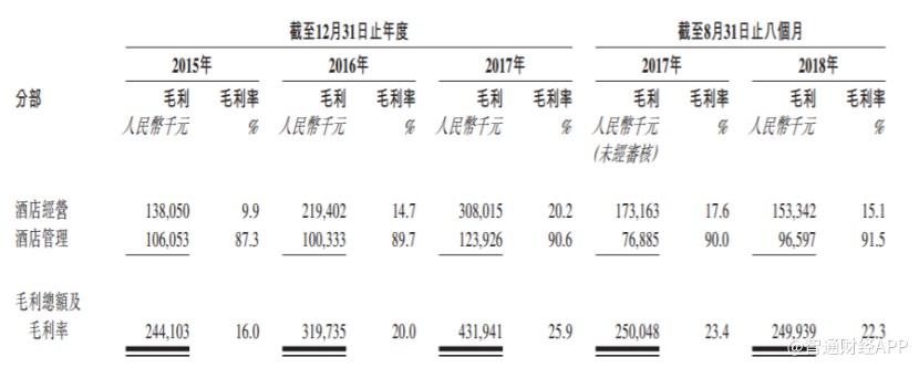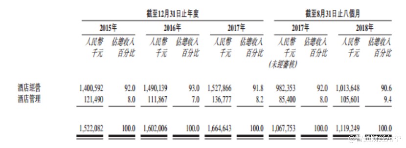 招股書顯示,截至2018年8月底,公司酒店經營業(yè)務下?lián)碛?1家酒店,其中29家租賃酒店和2家自營酒店;公司酒店管理業(yè)務下?lián)碛?09家酒店,其中96家為全方位服務管理酒店及13家特許經營酒店。
