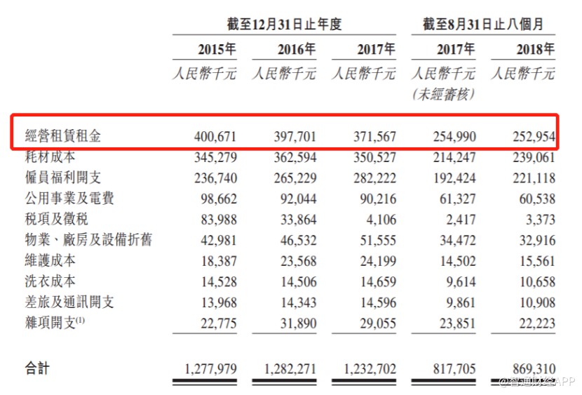 從招股書披露的公司銷售成本來看,雖然2015-2017年公司經營租金金額持續(xù)降低,但仍然占公司銷售成本的30%以上。
