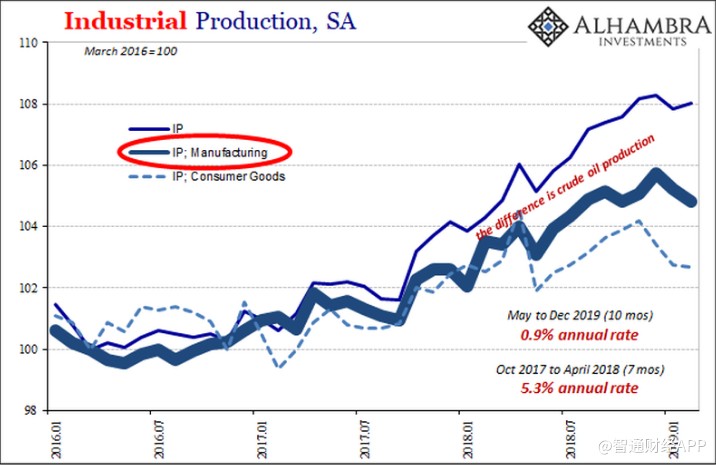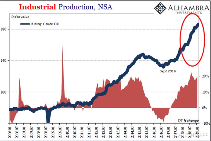 一個重要原因就是石油。美國國內(nèi)能源生產(chǎn)繼續(xù)推動整個行業(yè)。根據(jù)最新的估計,美國工業(yè)生產(chǎn)在過去幾個月,即2018年12月、2019年1月和2月出現(xiàn)整體下滑。相比之下,德國已經(jīng)增速放緩了至少9個月。