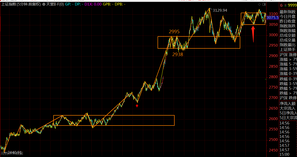 對(duì)于上證指數(shù)來(lái)說(shuō),上周市場(chǎng)走勢(shì)超預(yù)期,這地方構(gòu)建了一個(gè)針對(duì)五分鐘上漲趨勢(shì)中第二個(gè)中樞的第三類買(mǎi)點(diǎn)。在一段趨勢(shì)中,90%結(jié)束于第二個(gè)中樞結(jié)構(gòu),看這次能否走出超預(yù)期的行情,個(gè)人覺(jué)得很困難。周末科創(chuàng)板消息,讓資金在周一存在很強(qiáng)的利好兌現(xiàn)的欲望,還需謹(jǐn)慎謹(jǐn)慎再謹(jǐn)慎。